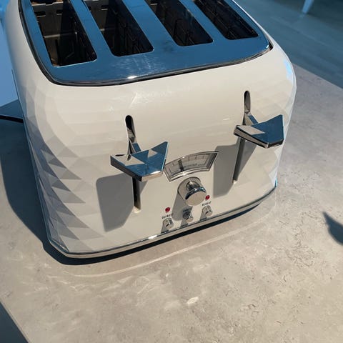 Kermanvärinen hyvä toimiva leivänpaahdin. Nätti ja näppärä.