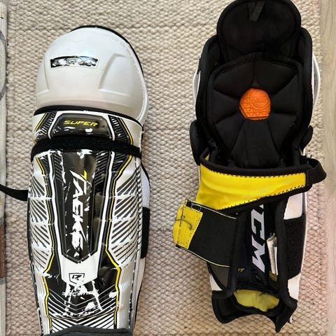 Jääkiekon polvisuojat, jotka on suunniteltu tarjoamaan korkeatasoista suojaa ja mukavuutta. Anatominen malli säädettävillä hihnoilla.