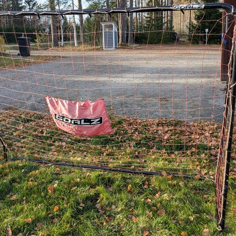 Tukevasti pystyssä pysyvä jalkapallomaali. 120 x 80 x 60 cm. Maali on
