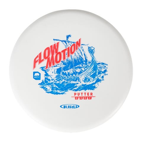 Frisbeegolfin putteri, jossa valtava käyttöalue, joka sopii erityisesti aloittelijoille. Kiekossa on vakaa lentorata eikä se heilu liian voimakkaasti sivuille. Gurun Arctic Line Putter Flow Motion on valmistettu Arctic Line -muovista, joka on vankka ja edullinen materiaali, joka kuluu nopeammin ajan myötä. Tämä on ihanteellinen vakauden muutoksiin ajan myötä, mistä on hyötyä alkuvaiheen aikana.