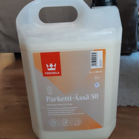 Parkettilakka 10l avaamaton purkki. Puolihimmeä parkettilakka sopii myös rappusille