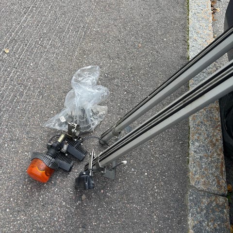 Kuvan Thule kattotelineet. Sopii ilmeisesti pakettiautoihin. Kiinnityspisteiden leveys säädettävissä. Kokonaispituus 164cm ja korkeus n. 27cm.