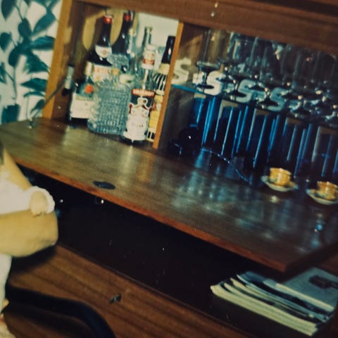 Retro kirjahylly baarikaapilla, avain tallella