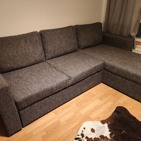 Myydään noin 5 vuotta vanha hyväkuntoinen Jysk tummanharmaa MARSLEV divaanivuodesohva.