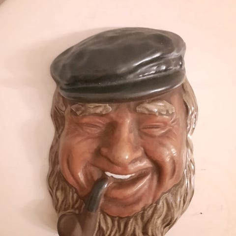 Koriste-esine, jossa on pesukarhu hahmo. Materiaali on keramiikkaa. Seinälle ripustettava 30cm korkea. Vain nouto ja käteismaksu
