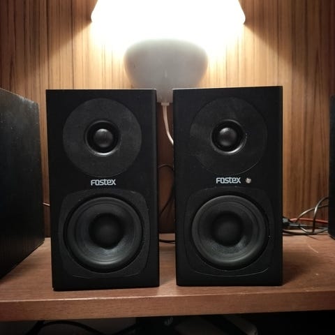 Myydään kompaktit Fostex PM 0.4 -aktiivikaiuttimet. Erittäin siistit. Toisessa RCA-liittimessä pientä vikaa - mukaan sovittimet joilla RCA-liittimen voi liittää kaiuttimeen plugiliittimen kautta. Koko 144 (lev) × 220 (kork) ja 180 (syv) mm, paino 3,6 kg.