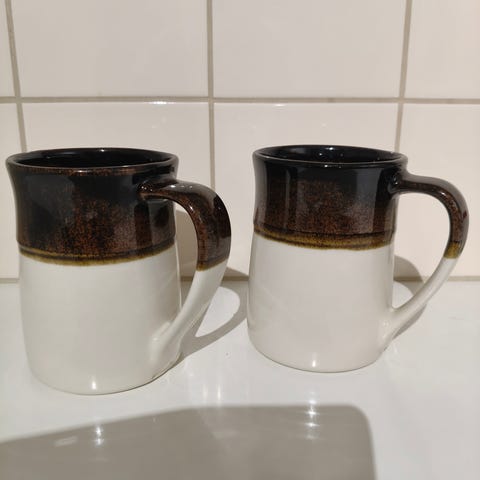 Nimikoidut Kermansavi mukit.Hyvä kunto.Hinta 5€/kpl.