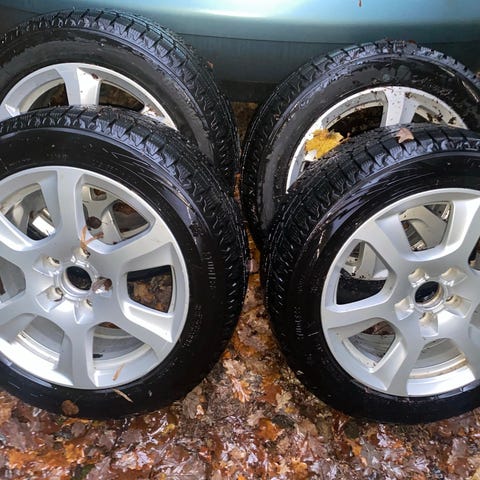 Hyväkuntoisilla kitkarenkailla olevat alumiinivanteet