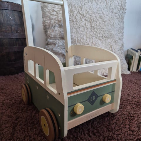 Erittäin siistissä kunnossa olevat kärryt lapsen kävelyn harjoitteluun.