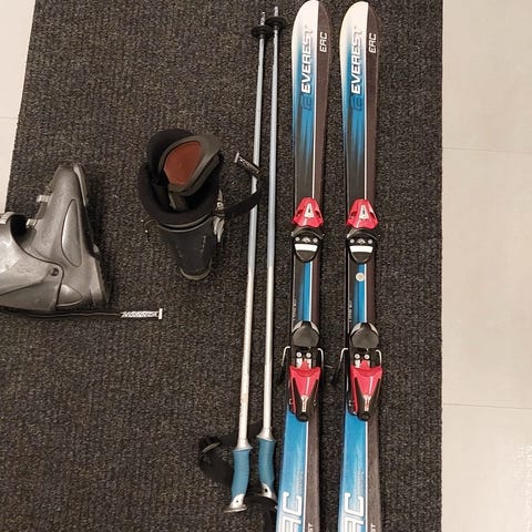 Kunnossa oleva laskettelusetti, toki pientä käytönjälkeäkin löytyy. Suksien pituus 170, sauvat 115, kenkä n. 39 jalkaan. Kulkeutuu lähialueille. Tarjoa jos hinta ei miellytä!