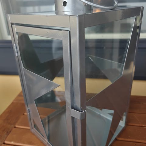 Näyttävä ja suurikokoinen hopean harmaa lyhty suurella tähdellä. Lyhtyä itsessään voi käyttää joko ulkona tai sisällä. Tätä lyhtyä ei enää kaupoista saa, ostettu muutama vuosi sitten. Lyhtyä kääntelemällä siitä saa hauskasti hyvin erinäköisen. Lyhty on kuvien mukaisessa kunnossa, hyväkuntoinen (lyhdyssä ei ole poltettu ikinä kynttilää), mutta ainoa virhe lyhdyssä on ollut ostohetkestä saakka se, että sulkija ei toimi ihan kunnolla/jokin pieni valmistusvirhe tms. Kerrassaan upea lyhty uuteen kotiin jouluista ja talvista tunnelmaa luomaan!