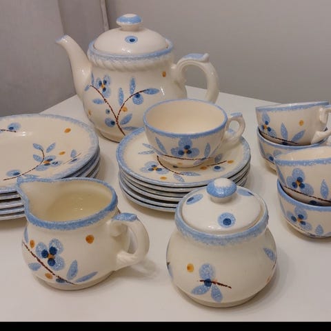 Teen/kahvinkeitin. Santos- merkkinen. Purut laitetaan ylös, vesi alas. Valmis tee tulee kannuun.