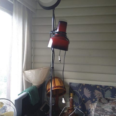Kaunis ja tunnelmallinen lattiavalaisin Loviisassa. Voidaan myös kuljettaa lähialueille ja pääkaupunkiseudulle. Kuvussa pientä rispaa, otettu huomioon hinnassa. Muuten hyväkuntoinen
