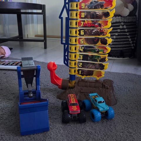 Sisältää hienoja yksityiskohtia, kaksi autoa, säädettävän rampin, joka haastaa painovoiman rajoja. Astu areenalle ja laukaise autot matkaan!