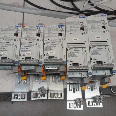 Omron 3G3MV 1,1 kvA taajuusmuuttajia. Vanhoja, toimivana purettuja. 1-vaiheisia. Kahden naamataulut ilmeisesti vaihtuneet, kun lukee 0,55kW, mutta tyyppikilpi 1,1 kvA. 40e/kpl.
