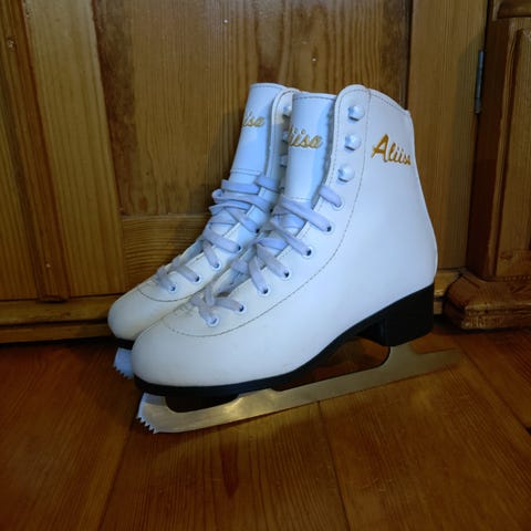 Lasten Aliisa kaunoluistimet. Pohjallinen 22,5 cm. Yhden lapsen viime talvena käytössä olleet. Nouto
