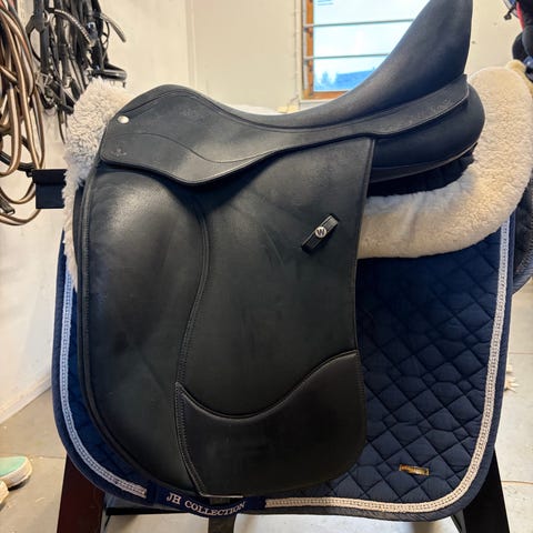 Wintec Pro Dressage Cair 18" koulusatula. Tummanruskea. Ilmatoppaukset ja runko ehjä. Nyt sisällä valkoinen XW kaari.