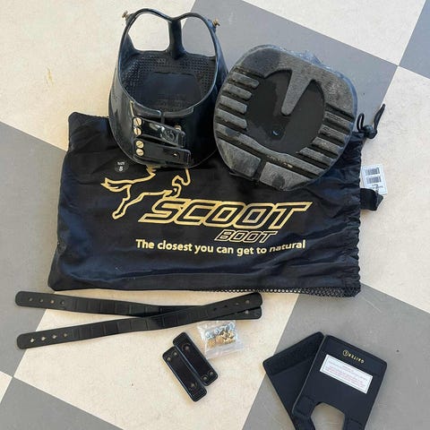 Nastoitetut scoot bootsit kengättömille hevoselle. Omalle oli epäsopivat 150e+postit