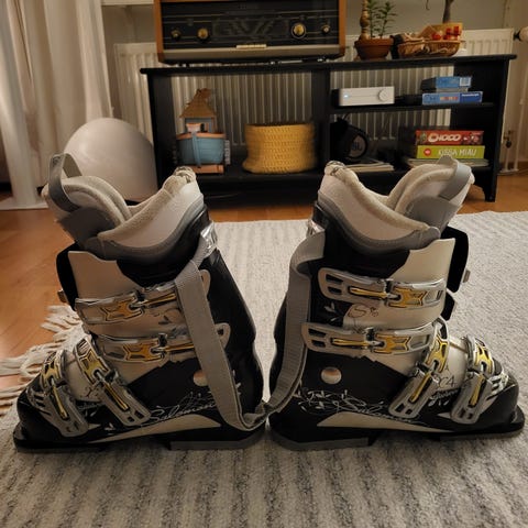 Myydään lasten Salomonin laskettelumonot kooltaan 230-235. Ulkomitta 275.