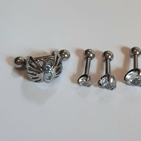 Helix koru ostettu bodymodista. Uudenveroinen. Paksuus 1.2 mm ja pituus 6 mm. Koru on valmistettu kirurginteräksestä, paitsi etuosan koristetta, joka on muotoiltu messingistä ja päällystetty rodiumilla.