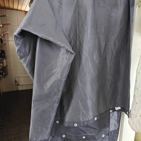 Ikeasta ostettu harmaa suihkuverho ylimääräisenä kaupan, koko 180x200cm