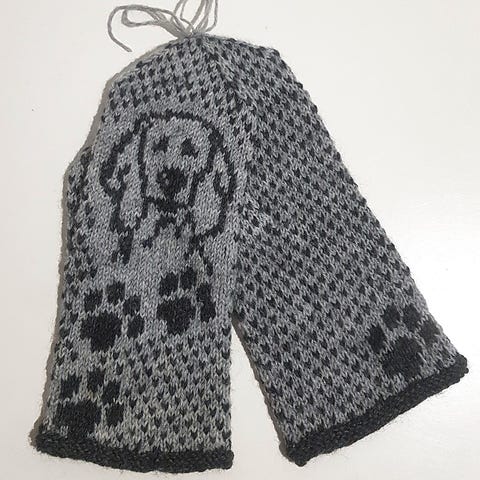 Novitan Nallelankasta kudotut hevosaiheiset lapaset, luonnonvalkoinen/ruskea. Painoa n. 70 g.