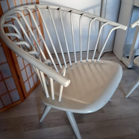 Kunto: Jalusta korjattu hitsaamalla (ks. kuvat). Nahka säilynyt hyvässä kunnossa. Käsinojissa vähäisiä käytön jälkiä. Luonnollinen patina korostaa tuolin ikää ja luonnetta.