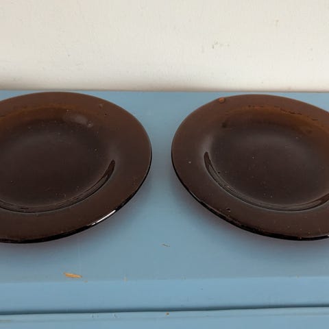 Ei halkeamia tai naarmuja. Yhden lasin yläreunassa viimeisen kuvan mukainen iskemä. Muissa ei iskemiä.
