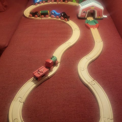 Myydään iso setti Brion junarataleinkeihin seuraavalle; mukana tulee suuri määrä erilaisia vetureita, junavaunuja, kolme veturikuskia, seepra, possu, puita, junarataosia, erikoisosia junarataan liittyen sekä muita puupalikoita (parin hujuvan tornin palikat, joista on hyvä rakennella maisemia ratojen ympärille) 😊