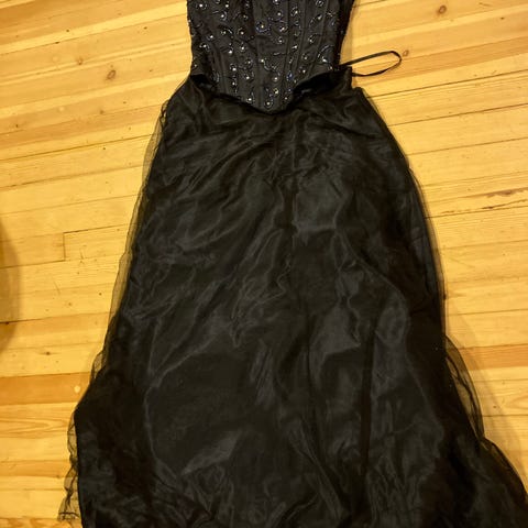 Myydään kerran käytetty kaunis kimalteleva tummansininen tanssiaisasu. Koko M mutta menee myös S kokoa käyttävälle. Lyhennetty sopivaksi noin 167cm pituiselle. Vannehameen ja pukupussin saa mukaan.