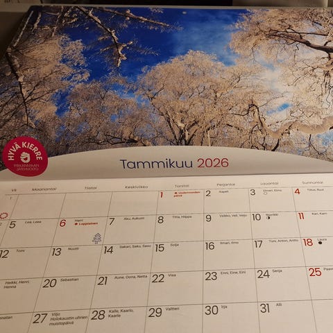 UUSI, kookas vuoden 2026 SEINÄKALENTERI. Kyseessä on Pirkanmaan Jätehuollon Roskakalenteri 2026, näyttävä ja kätevä seinäkalenteri, jossa on hyvä paperilaatu, johon voi kirjoittaa muistiinpanoja eri päiville. Viehättävät luontokuvat joka kuukaudelle.