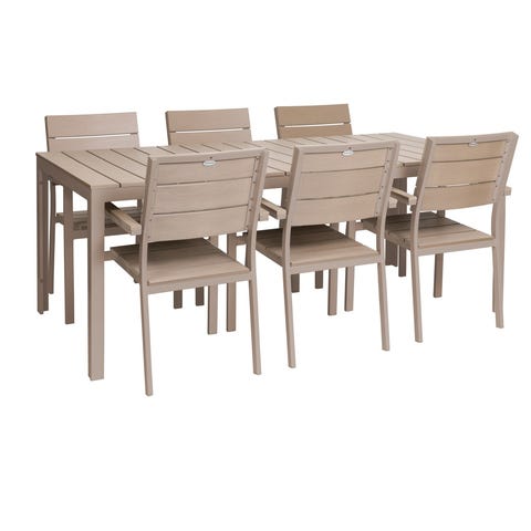 Suvi Aintwood pöytä 200x90 cm +6 kpl tuolia, beige/ valkoinen