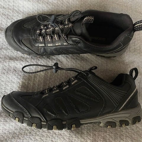 Käyttämättömät vaelluskengät, lapsi ei vielä lämmennyt nauhakengille. Pohjallisen mitat n. 24,5 x 8,9 cm. Sisämitta kenkämitalla mitattuna n. 24,4 cm. Koira- ja kissatalous. MMM.