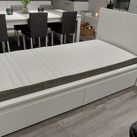 Ensimmäisessä kuvassa vieraileva kissa on syyllinen pieneen jälkeen yhdessä sängyn nurkassa (kts. Vika kuva). Muuten moitteettomassa kunnossa oleva tukeva sänky.