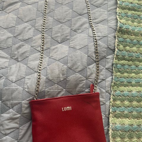 Naisten LUMI-iltalaukku, mustaa nahkaa. Mitat 22x14 cm. Vetoketjullinen, sisäosa sininen ja sisäosassa sivutasku. Kunnoltaan kuin uusi.