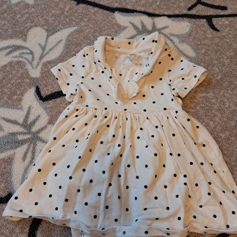 H&M lasten mekko, koko 68. Valmistettu puuvillasta. Mekossa on pitkät hihat ja kirjava kuviointi.
