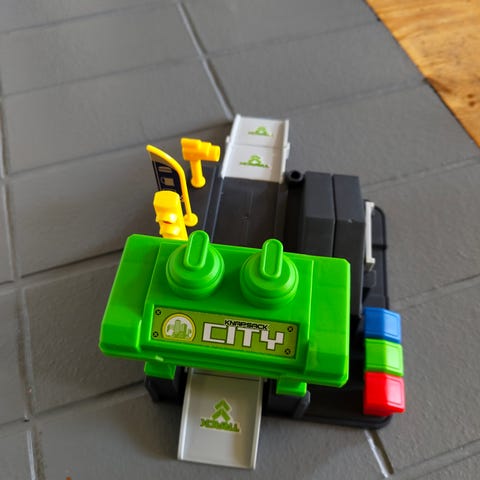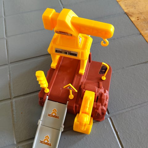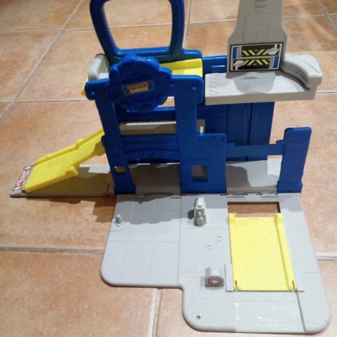 Linkin kautta tarkempia tietoja ja lisänä vielä paloauto-yhdistelmä. Puuta ja muovia. Puisten junaratojen kanssa yhteensopiva.