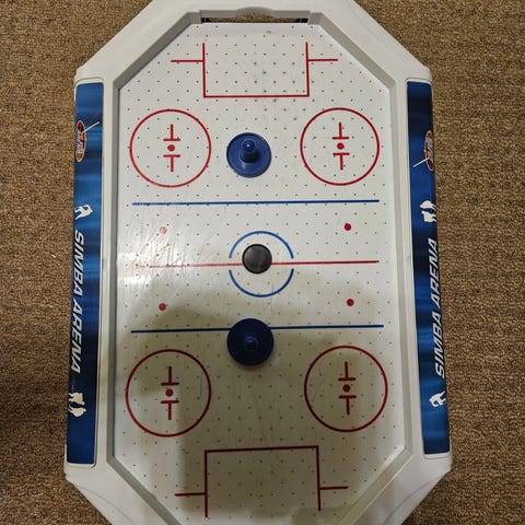 Toimiva ilmakiekko peli. Päädyt on teipattu mutta toiminut noin vuoden päivät