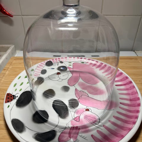 Iso lasikupu aluslautasella halk. 25cm ja kork.25cm.