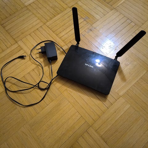 TP-Link TL-WR541G reititin, väri valkoinen. Langaton verkkolaite, jossa yksi antenni. Mukana virtalähde ja verkkokaapelit.