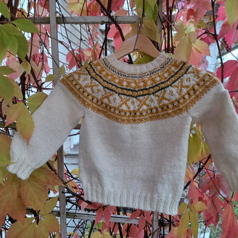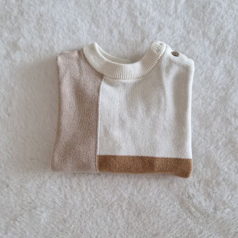 Taaperolle itse kutomani neulepusero, koko n. 2-3v. Sovituskuvassa 2-vuotiaan lapsen päällä ja hänelle hieman reilu (hoikka).