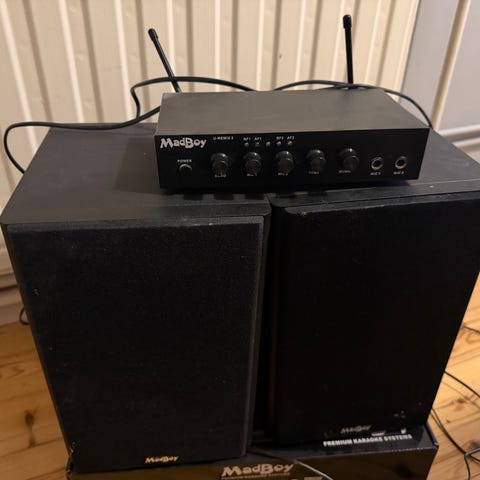 Myydään MadBoy U-TUBE 20R langaton karaokemikrofonisetti. Täysin toimiva setti, vaikka mikrofonikapuloissa onkin käytön jälkiä ja toisen mikrofonin ON/OFF-kytkimestä on muoviosa irronnut (katso kuvasta). Myös mikrofonin latausasema johtoa on aikoinaan hieman vahvistettu (ks. Kuva).