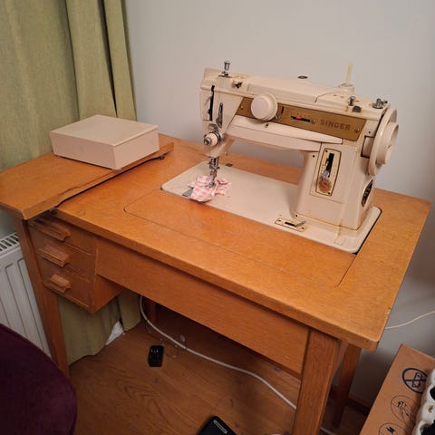 Kangas hieman venähtänyt, mutta ei haittaa työskentelyä. Vuosimallista ei tietoa. Tule hakemaan pois.