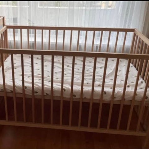 Ikean valkoinen pinnasänky. Hyvä käytetty kunto, pientä maalin kulumista, josta kuva. Pohjan saa nostettua ylemmäs, kuva kohdasta johon saa nostettua. Hyvä sänky pienille!