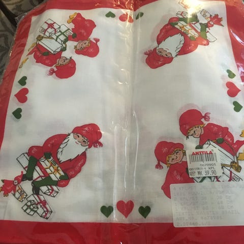 Vanha joululiina, pikkutahra yhdessä kohtaa, ei muuta moittimista. Koko 36cm x 60cm.