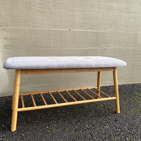 Myydään hyvässä kunnossa oleva Jyskin Vadehavet penkki. Polyesteri ja massiivitammi. L81 x K45 x S35 cm.