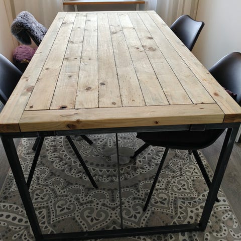 Pari vuotta vanha tamminen ruokapöytä. Juuri hiottu ja öljytty pellavaöljyllä, joten kuin uusi.