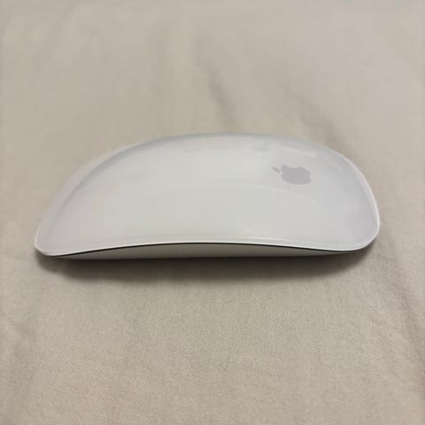Apple Magic Mouse langaton hiiri valkoisella värillä. Sopii tietokonekäyttöön ja tarjoaa tavanomaiset hiiren toiminnot langattomasti.