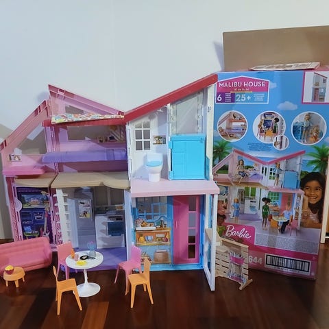 Myydään Barbie Malibu iso leikkitalo. Useita kerroksia ja huoneita sekä hissi. Taittuu näppärästi kasaan.