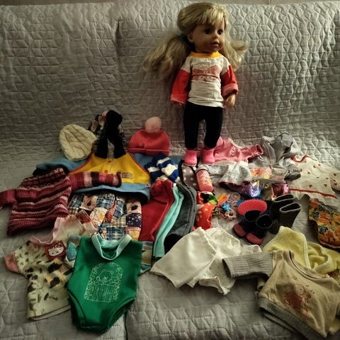 Vauvanukke 8€ ja nuken vaatteet 7€